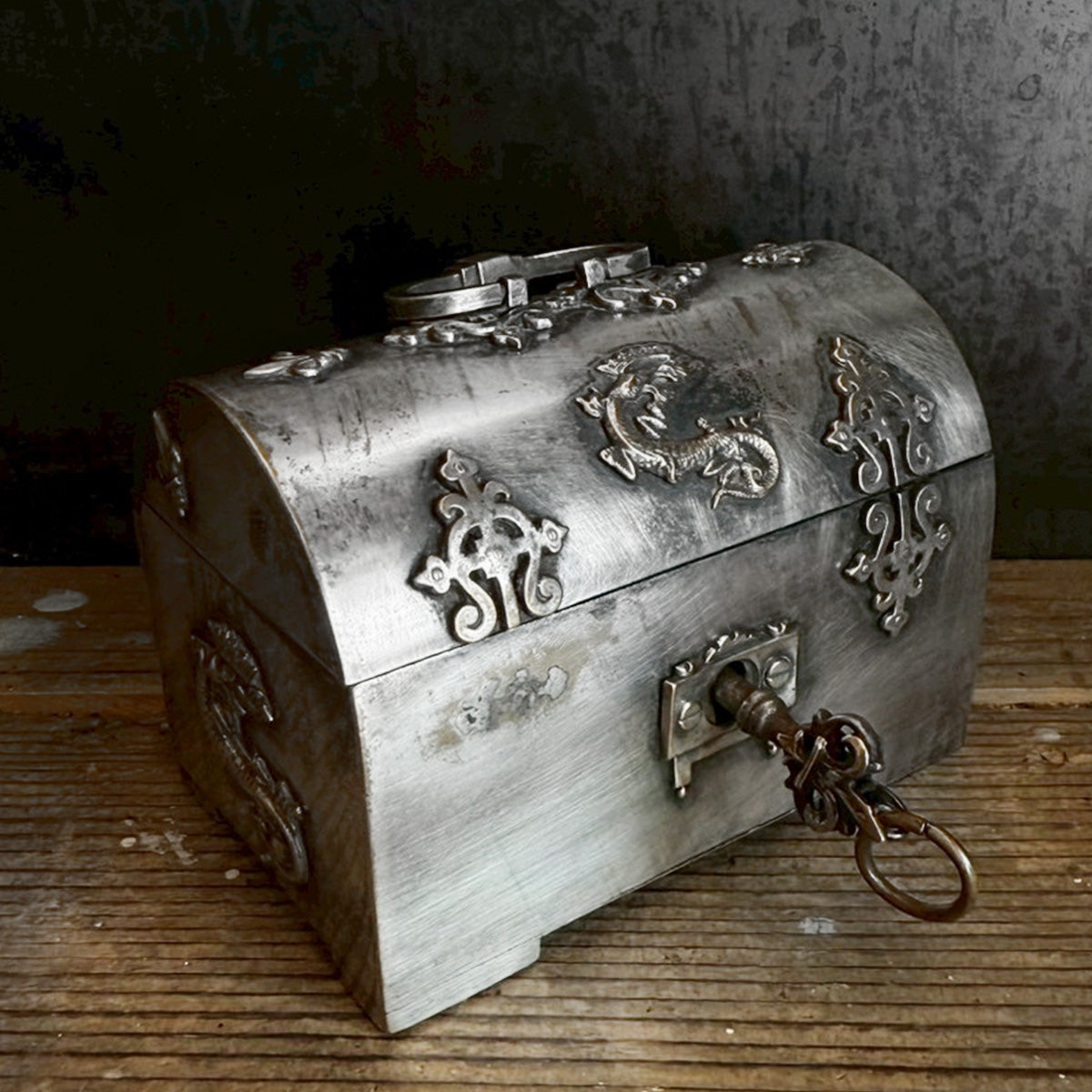 重厚感のある金属製ジュエリーボックスは繊細な装飾と神秘的なエンブレムが施され、クラシックで高級感が溢れている...