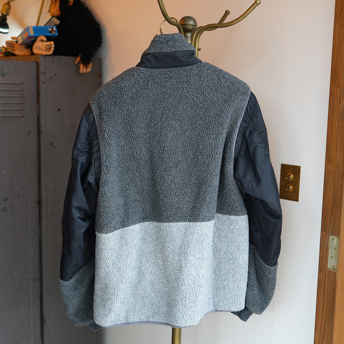 ナイロンツイルとパイルフリースを組み合わせたMA-1スタイルのフリースジャケット
