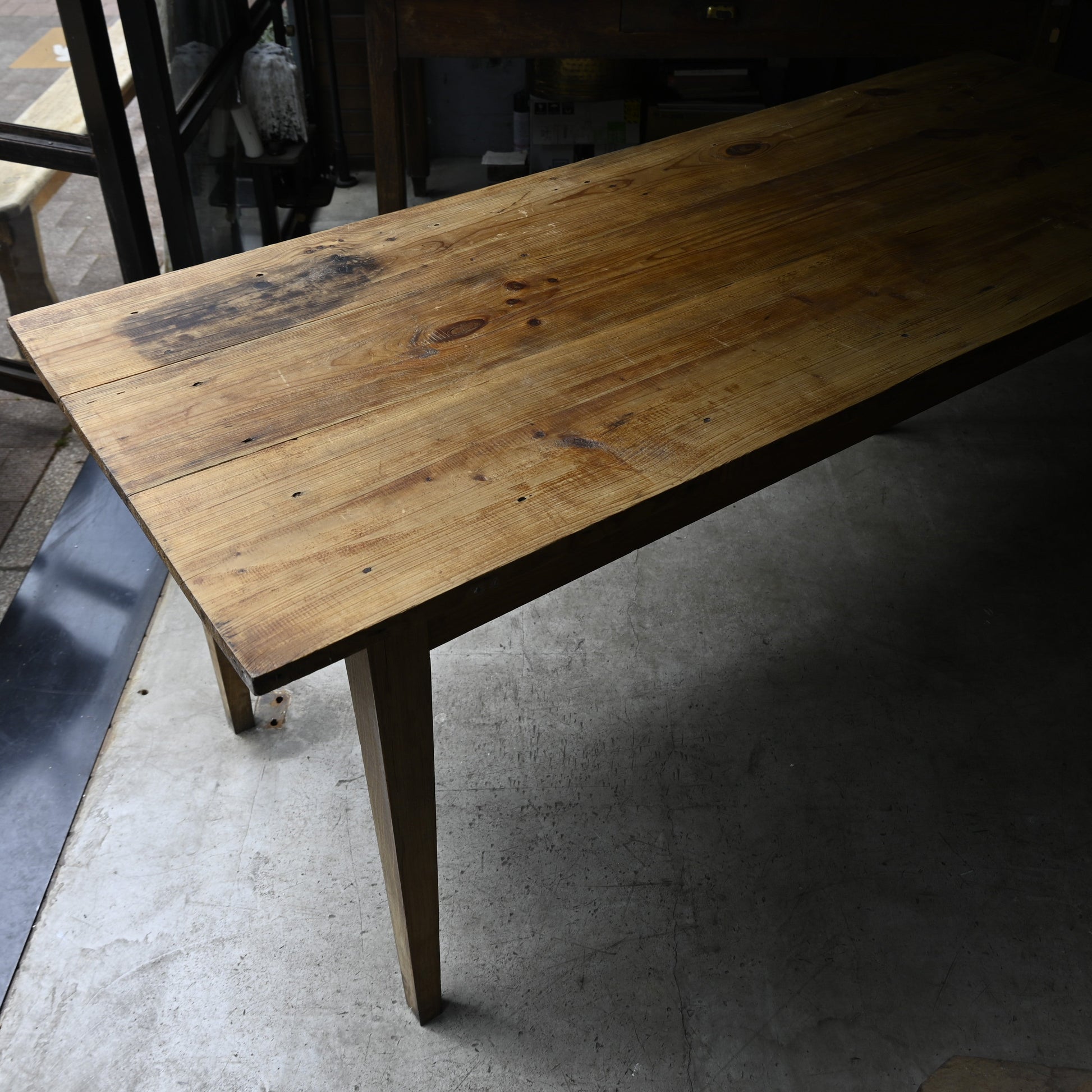 いい感じのシャビーなロングテーブル...