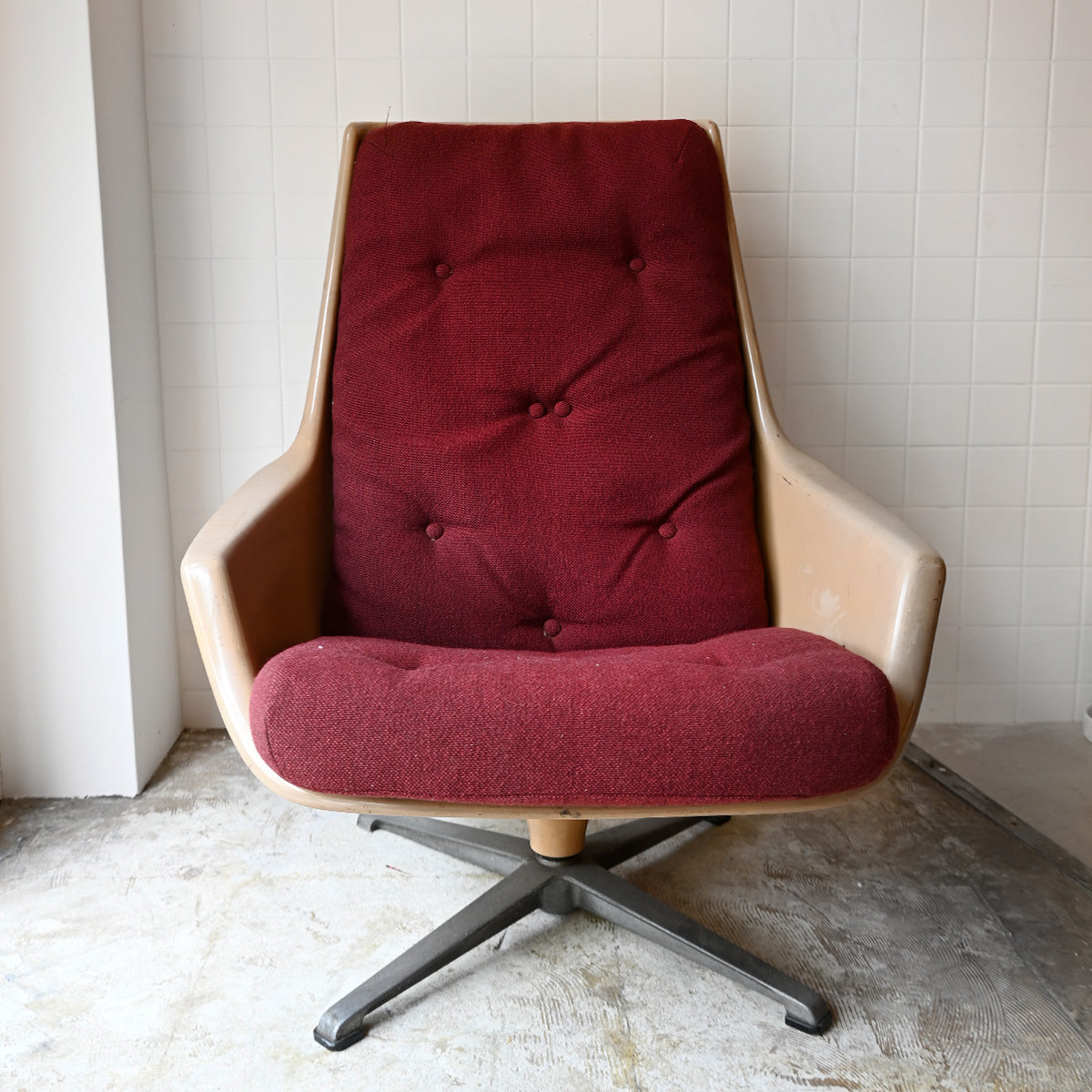 ボディが珍しいベージュブラウン、クッションがボルドー色で落ち着いた雰囲気を演出...