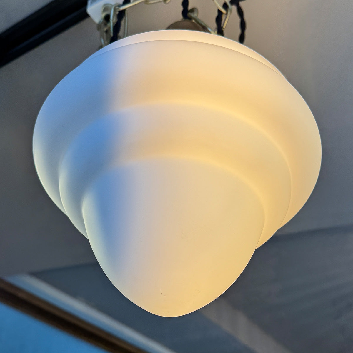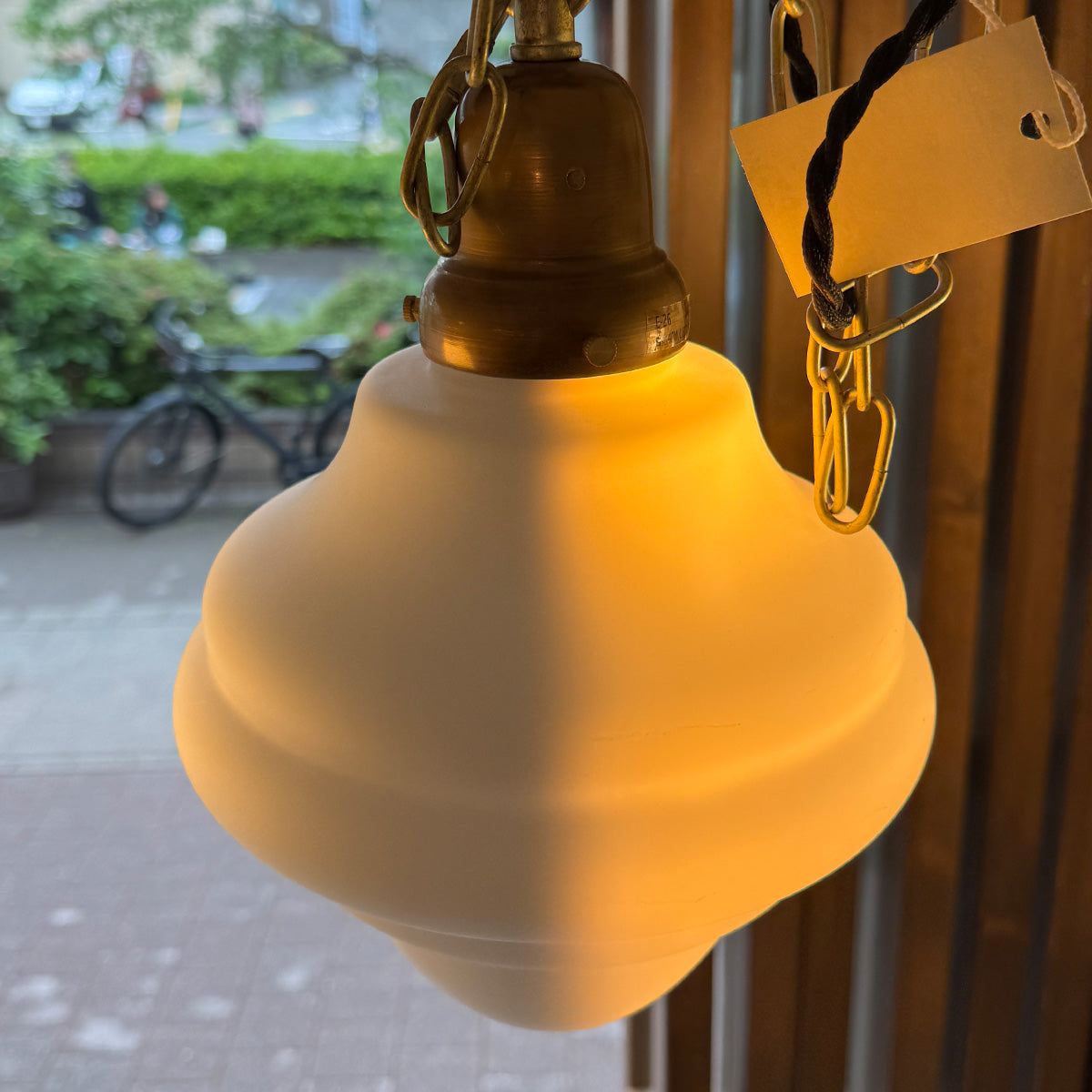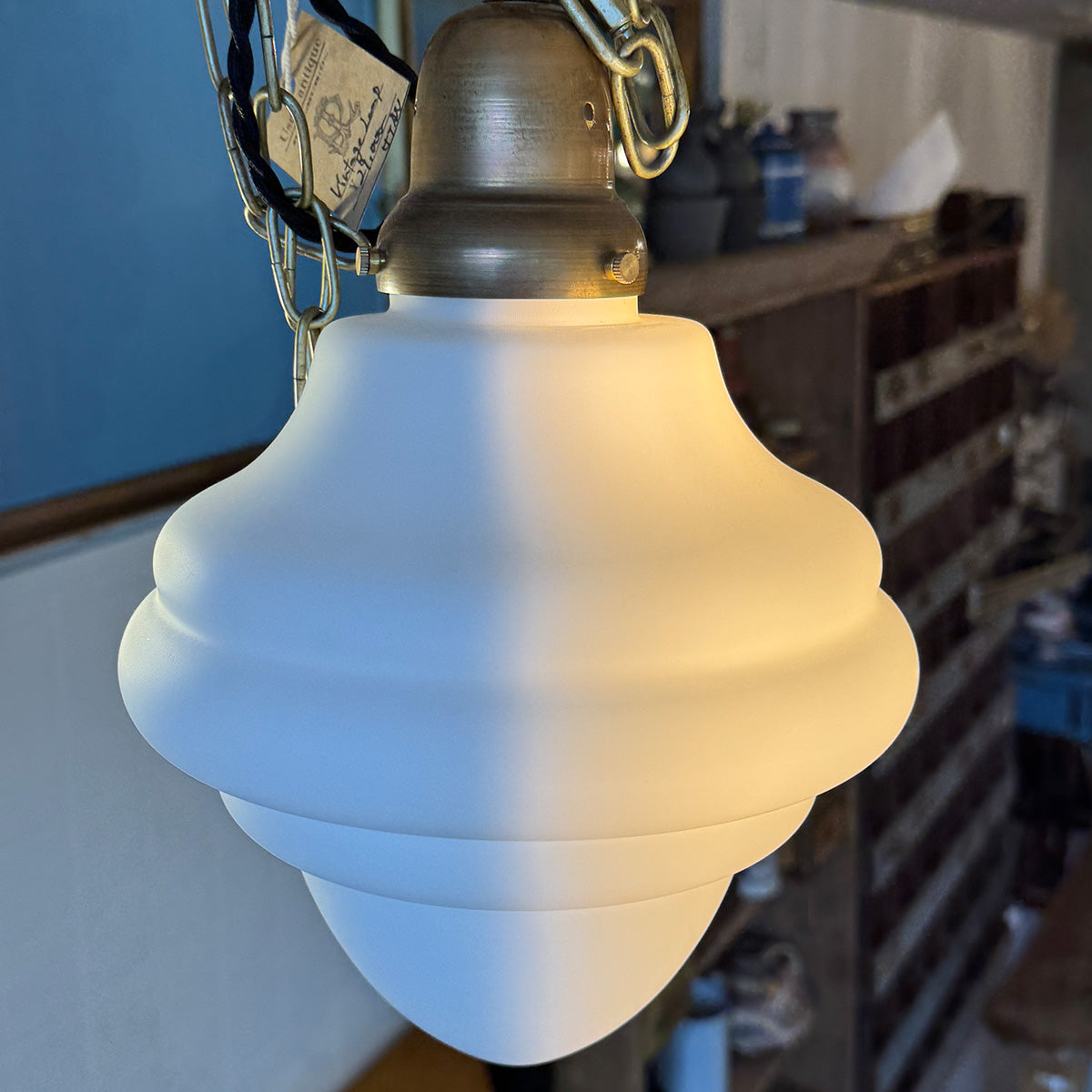 真鍮のトップに綺麗なラウンドのミルクガラス...