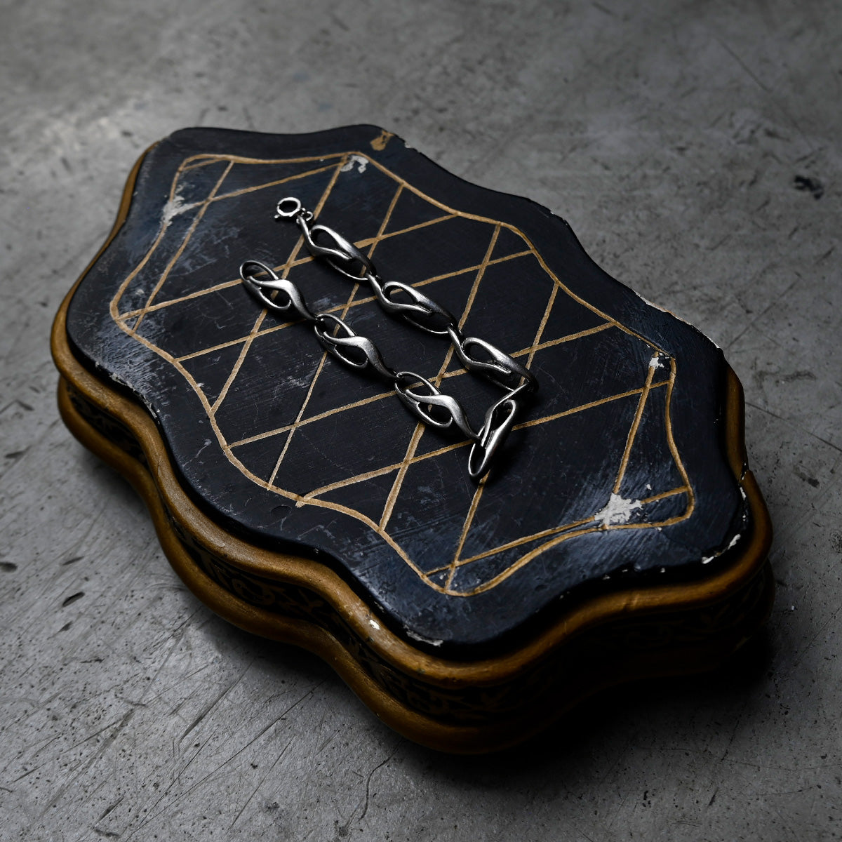 Vintage Twisted Link Silver Bracelet{R-00923}